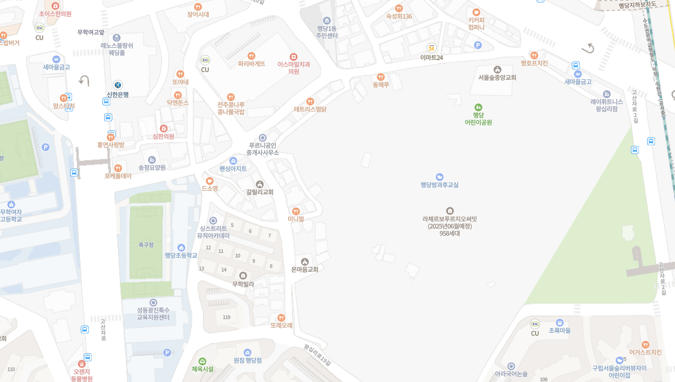 - 위치: 서울특별시 성동구 행당도 128번지 일대, 지도, 주변 시설 (학교, 마트, 병원 등)