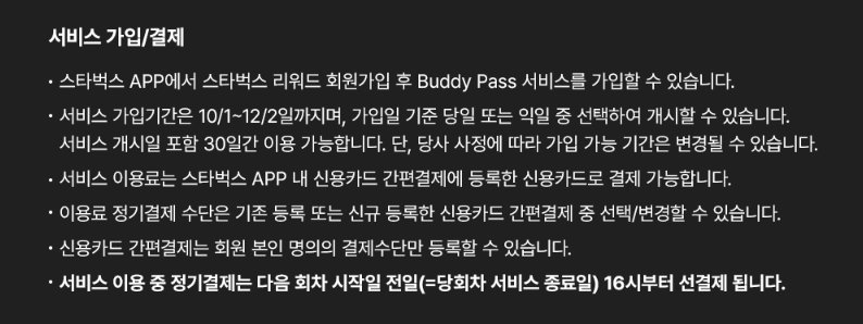 3. 스타벅스 구독서비스 '주의사항'