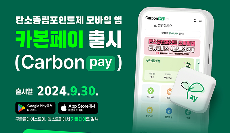 탄소중립을 실천하면서 포인트까지 모을 수 있는 ‘카본페이’가 국민들에게 더욱 친근하게 다가갈 것으로 보입니다.
