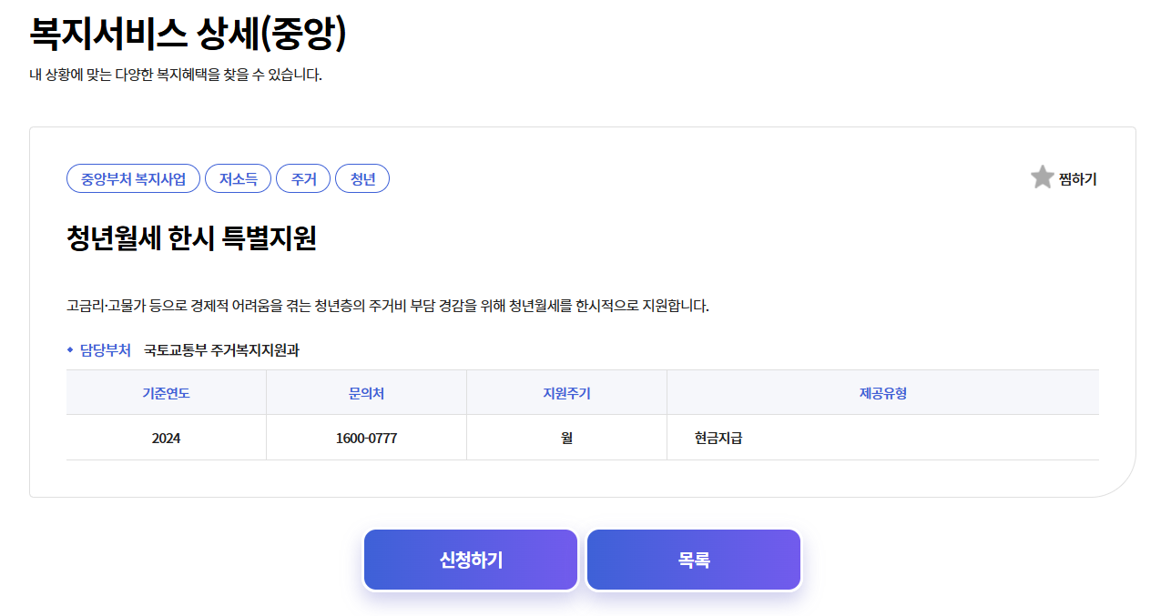 - 대상 요건: 부모와 따로 거주하는 만 19세~34세 무주택 청년