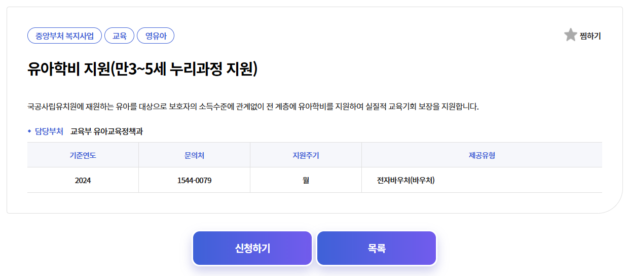 유아학비 지원은 만 3세에서 만 5세 사이의 유아를 대상으로 하며, 국공립 및 사립 유치원에 다니는 경우 유아학비 지원을 받을 수 있습니다.