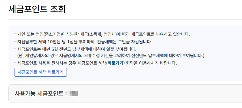 3. 세금포인트 확인 및 조회방법