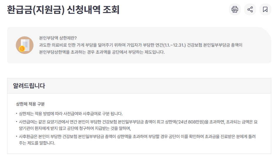 공단 홈페이지나 고객센터(☎️ 1577-1000)를 통해 본인부담 상한제 환급금을 신청할 수 있어요.